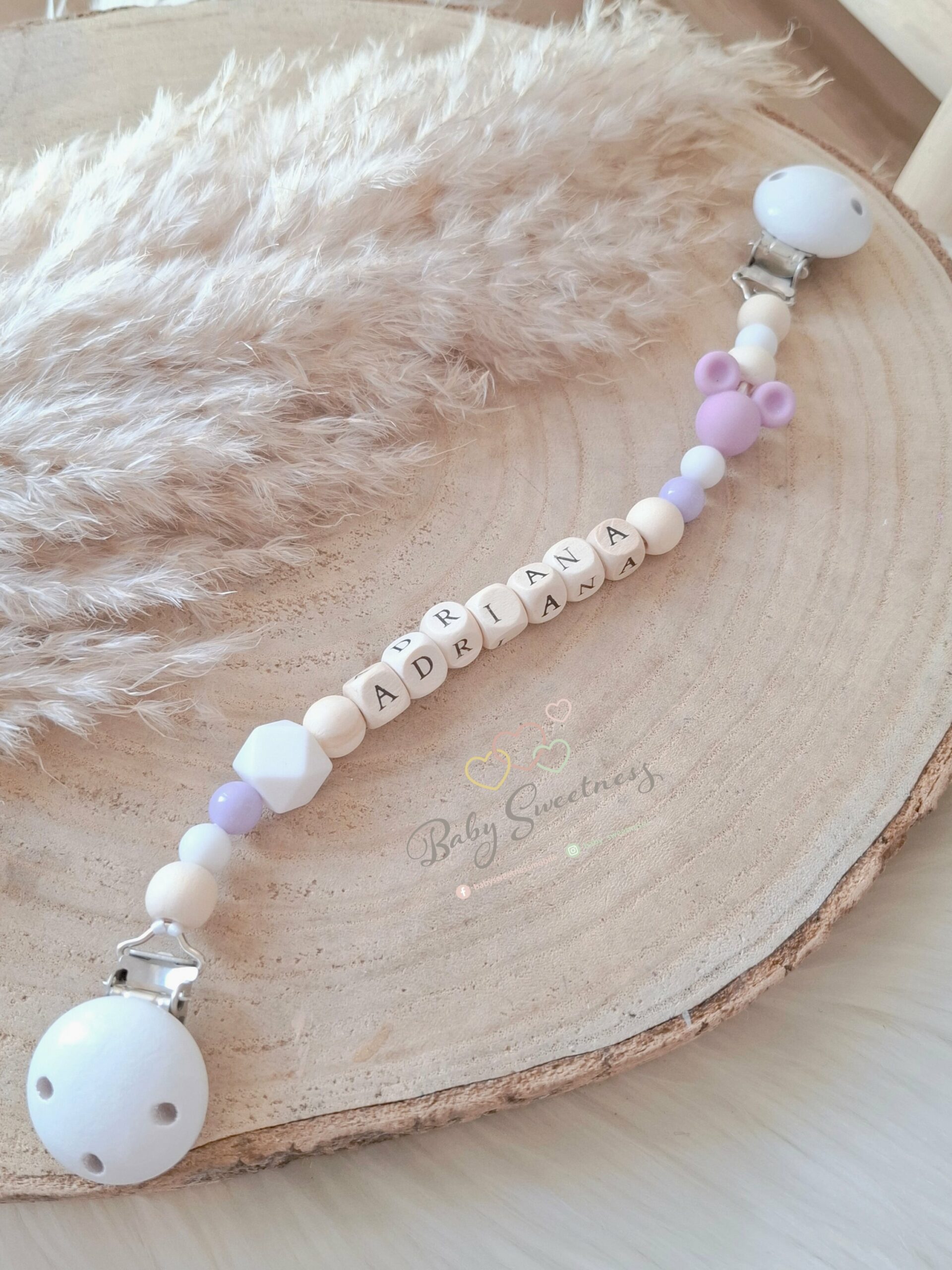 Unique et indispensable, l’attache tétine en bois et silicone personnalisée permettra à votre bébé d’avoir toujours sa tétine à portée de main et de ne plus la perdre lors de vos promenades en famille, à la crèche ou dans les magasins.