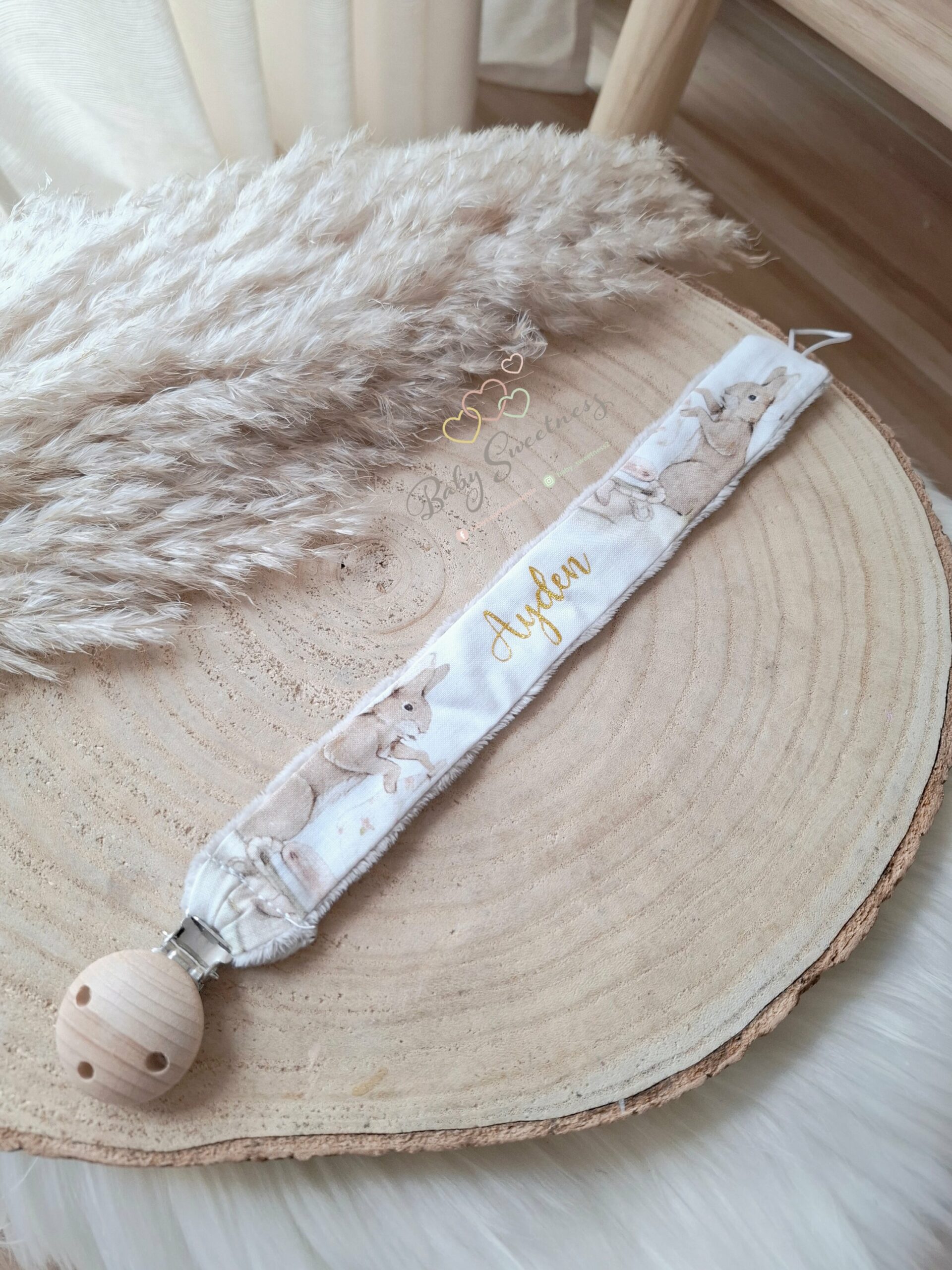 En achetant une attache tétine en tissu de la marque Baby Sweetness, vous avez la possibilité de choisir vos tissus préférés et de le personnaliser avec le prénom de votre enfant. Vous pouvez également l’associer à d’autres articles eux aussi entièrement personnalisables tels que les doudous, protèges carnet de santé, bavoir, lange, etc.