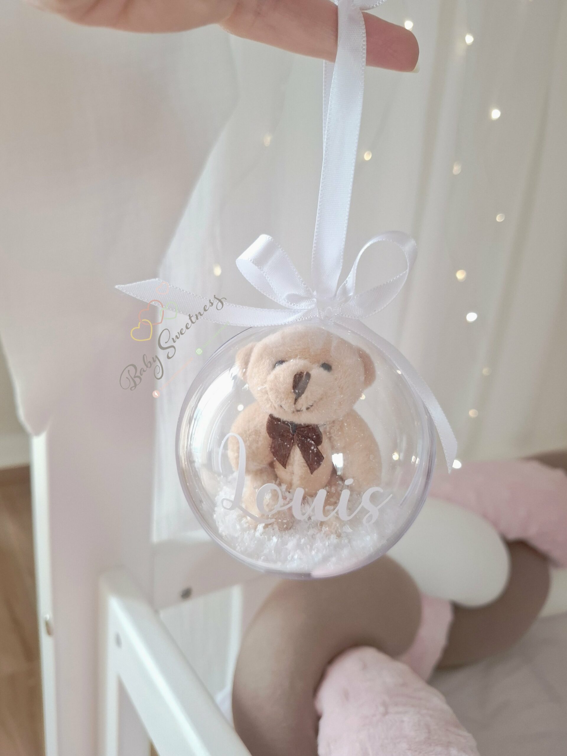 Les boules de Noël ourson en peluche avec prénom donneront une touche très élégante à votre sapin, vos cadeaux ou encore votre table de Noël. Écrivez le prénom du destinataire et offrez ces magnifiques décorations personnalisées à vos proches.