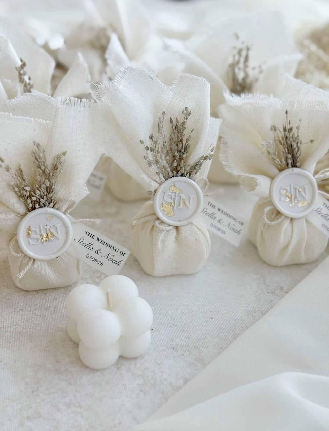 Chez Baby Sweetness, c’est simple ! Je vous propose ces jolies bougies cubes Bohème parfumées réalisées en cire de soja avec des fleurs séchées. Vous pouvez les personnaliser à votre goût afin de remercier vos invités de leur présence et leur prouver votre amour.