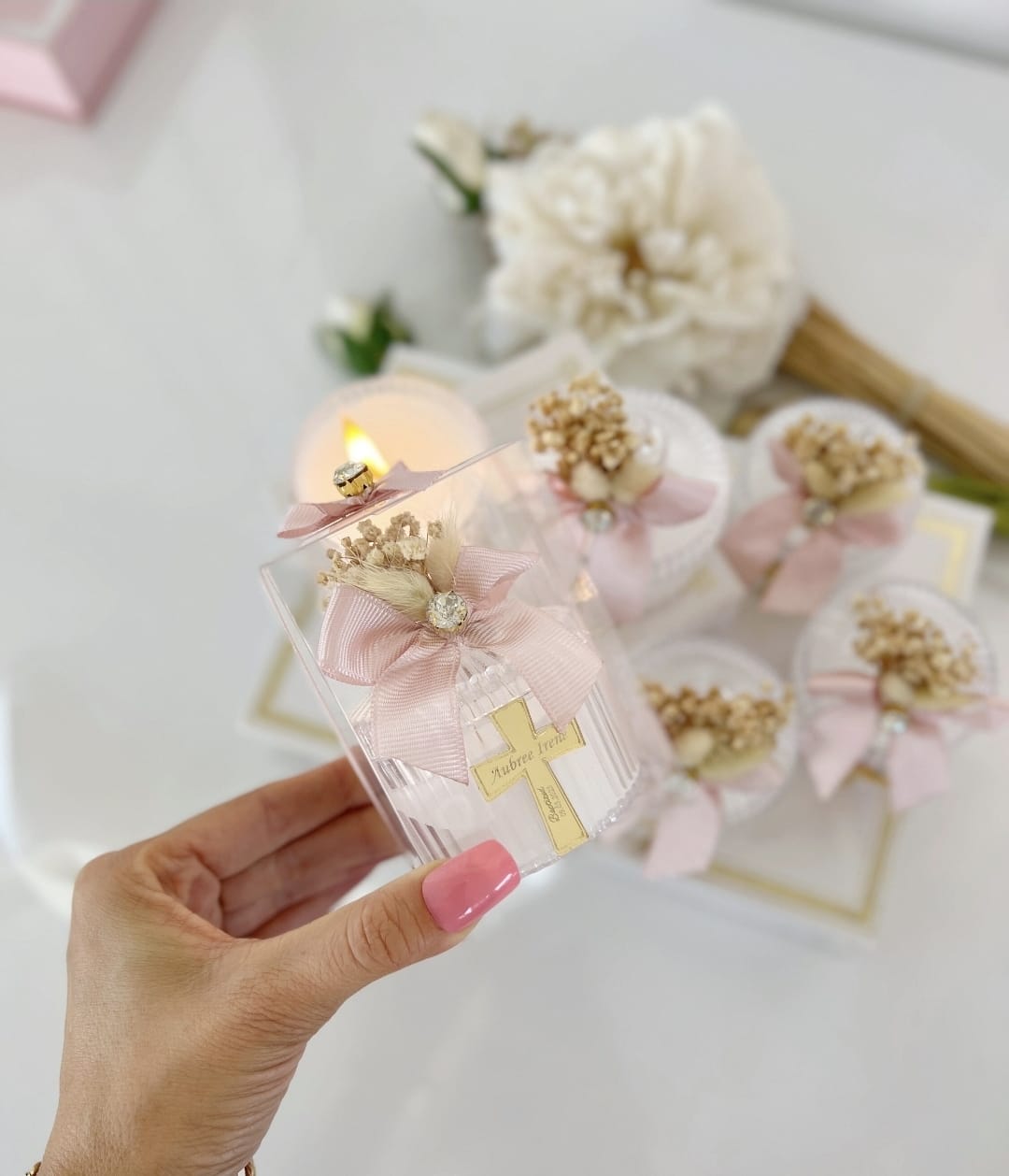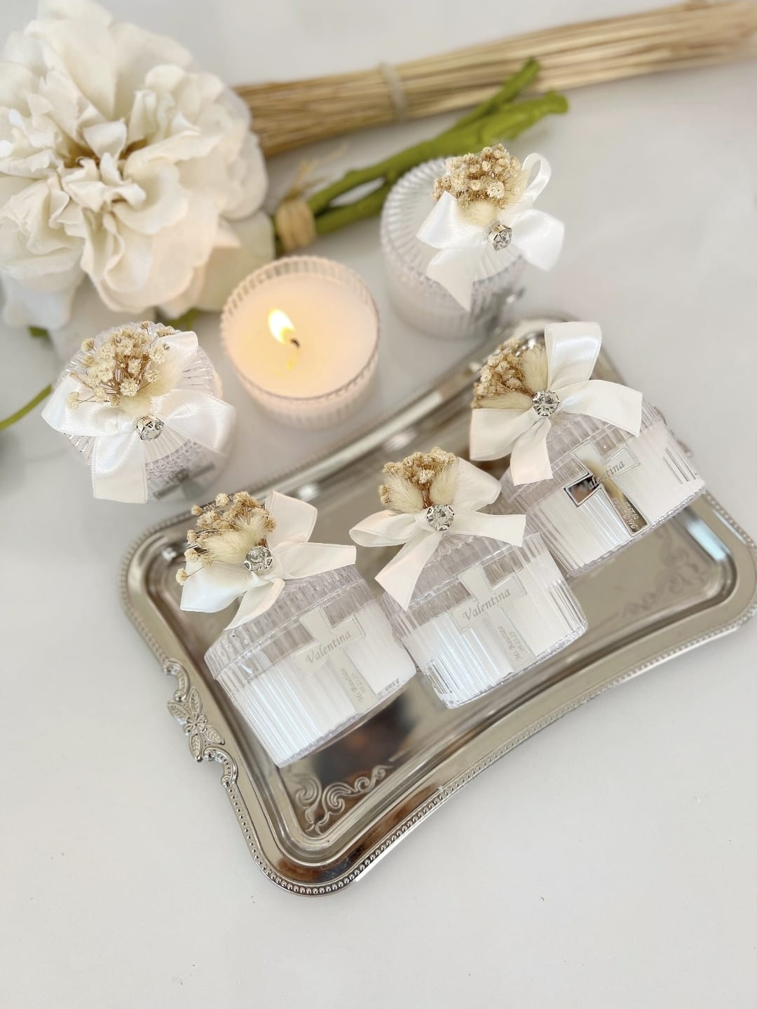 Je vous propose ces jolies bougies fleurs séchées. Vous pouvez les personnaliser à votre goût afin de remercier vos invités de leur présence et leur prouver votre amour.