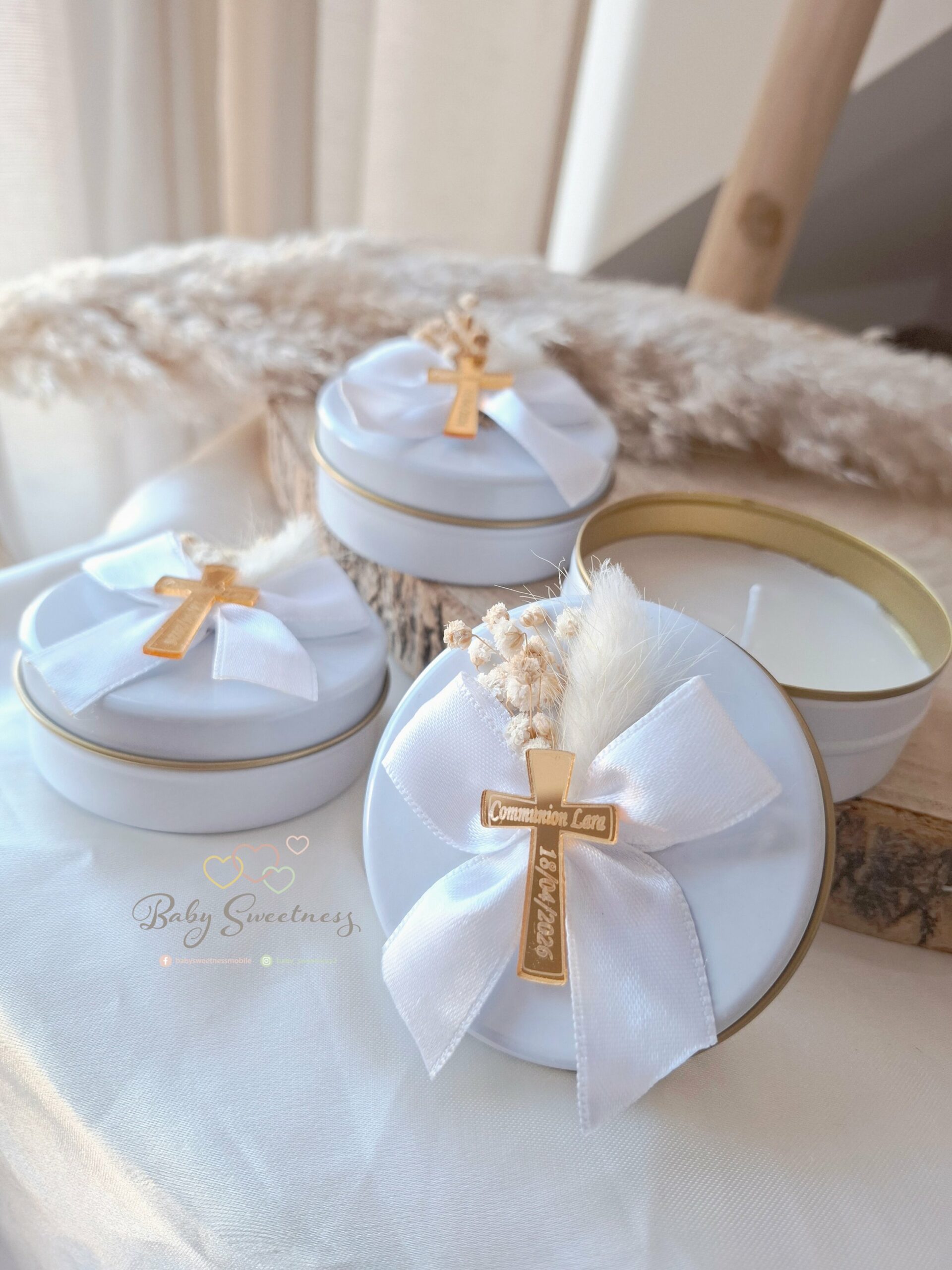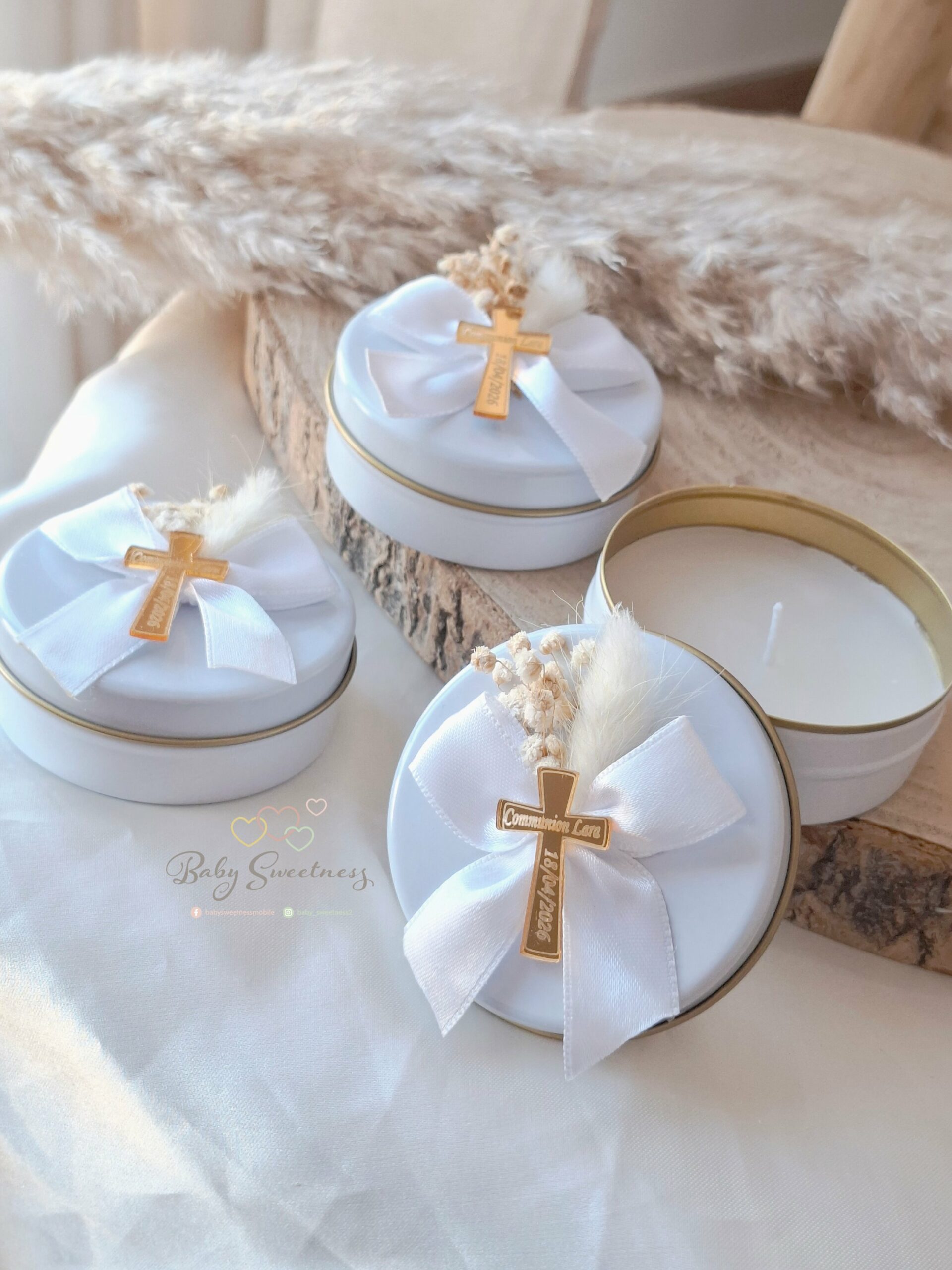 Chez Baby Sweetness, c’est simple ! Je vous propose ces jolies bougies fleurs séchées personnalisées. Vous pouvez les personnaliser à votre goût afin de remercier vos invités de leur présence et leur prouver votre amour.