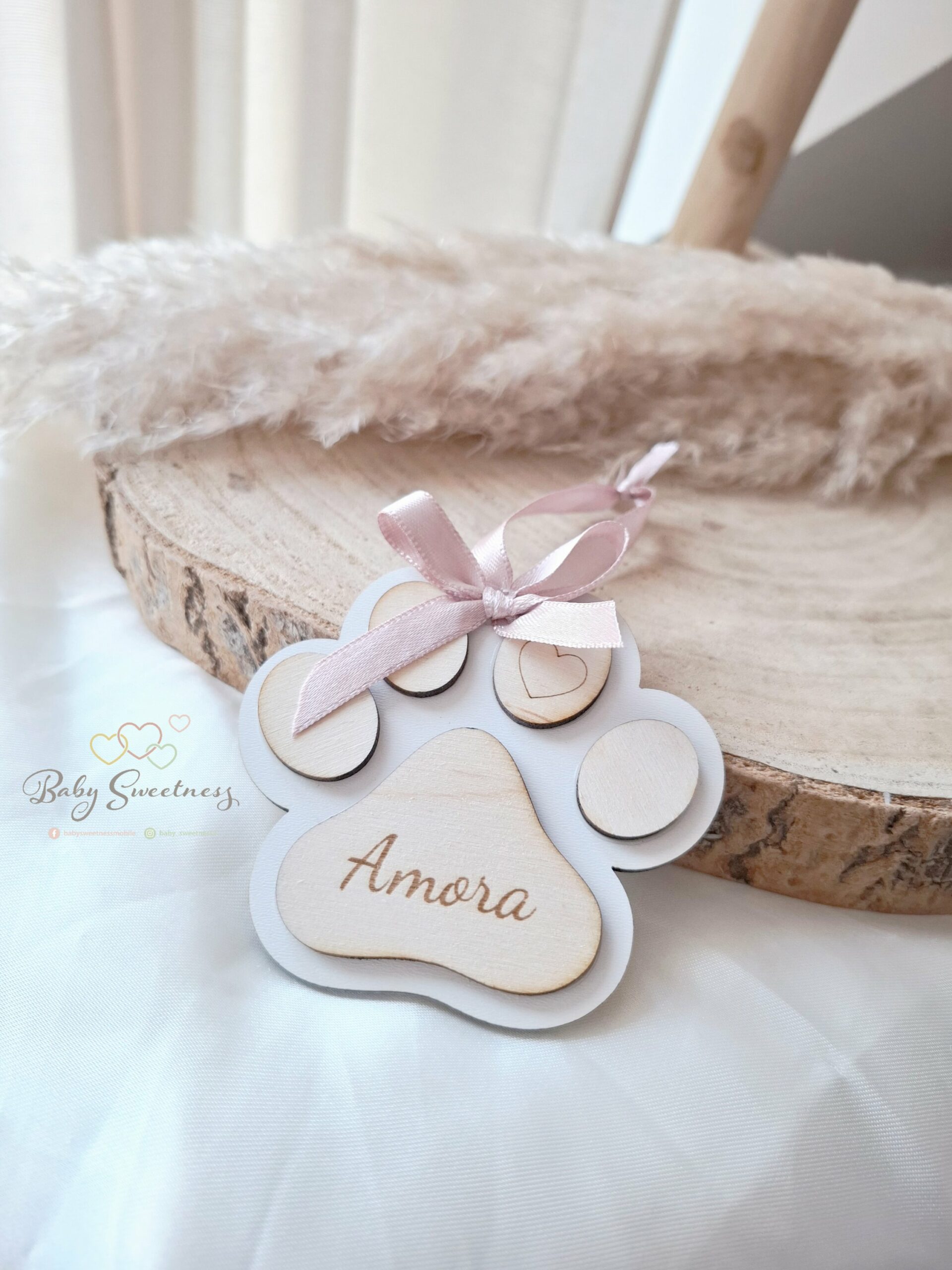 Fabriquées en bois, les boules de Noël patte de chien ou chat avec leur noms personnalisé sont un joli cadeau pour vos animaux de compagnies. Offrez leur une place digne de leur affection dans votre sapin !