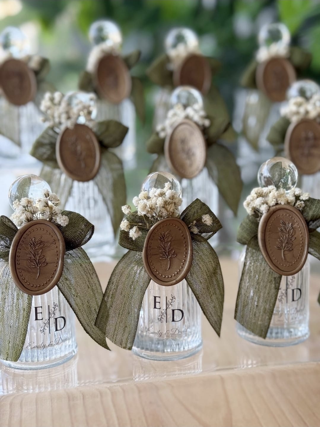 Chez Baby Sweetness, c’est simple ! Je vous propose ces jolies bouteilles eau de parfum Cologne personnalisées avec des fleurs séchées. Vous pouvez les personnaliser à votre goût afin de remercier vos invités de leur présence et leur prouver votre amour.
