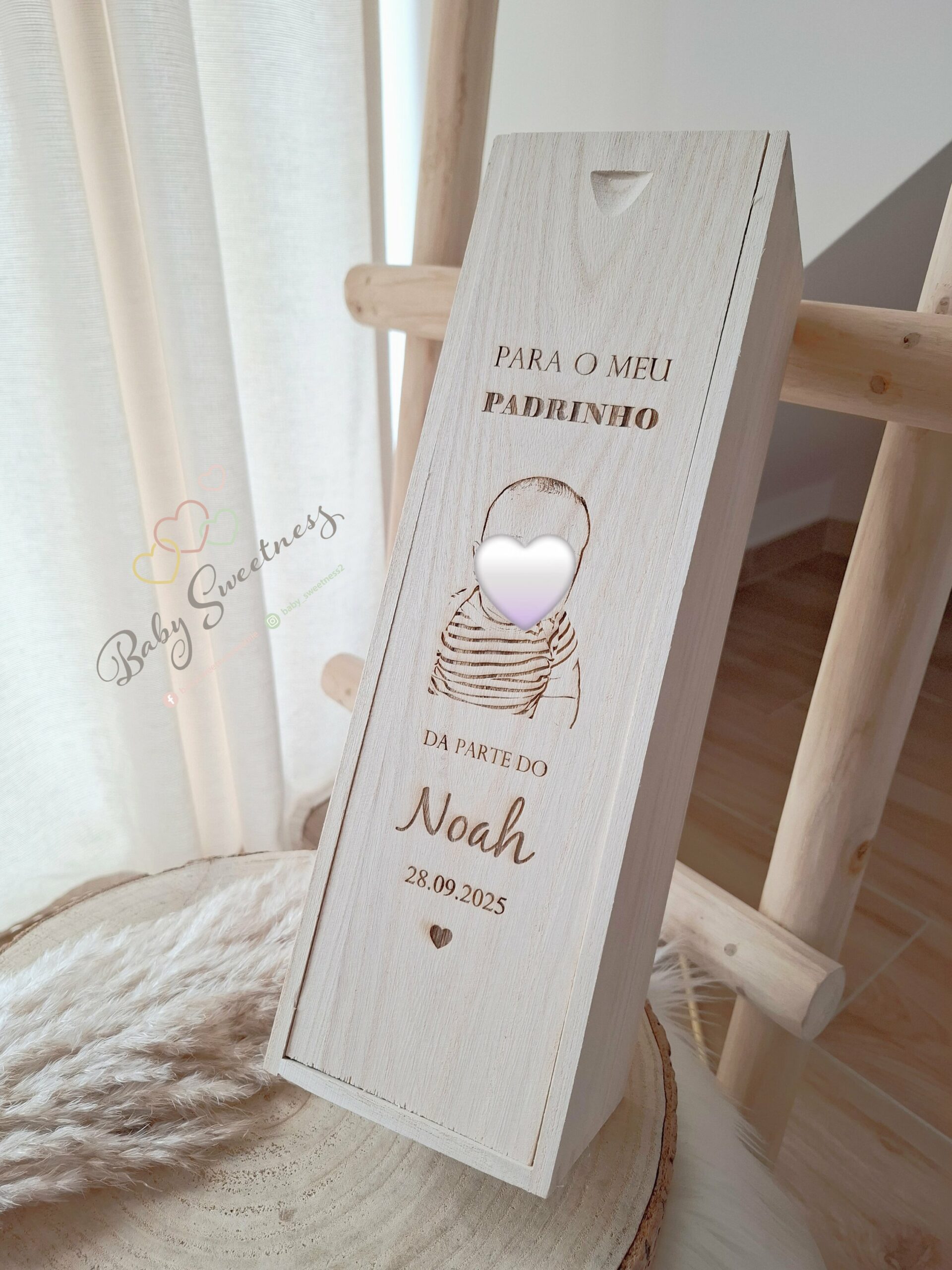 Entièrement fabriqué au sein de l’atelier Baby Sweetness, le coffret à vin en bois est personnalisé avec un texte et photo de votre choix. A la fois simple et unique, il permet de décorer la maison tout en gardant des beaux souvenirs.