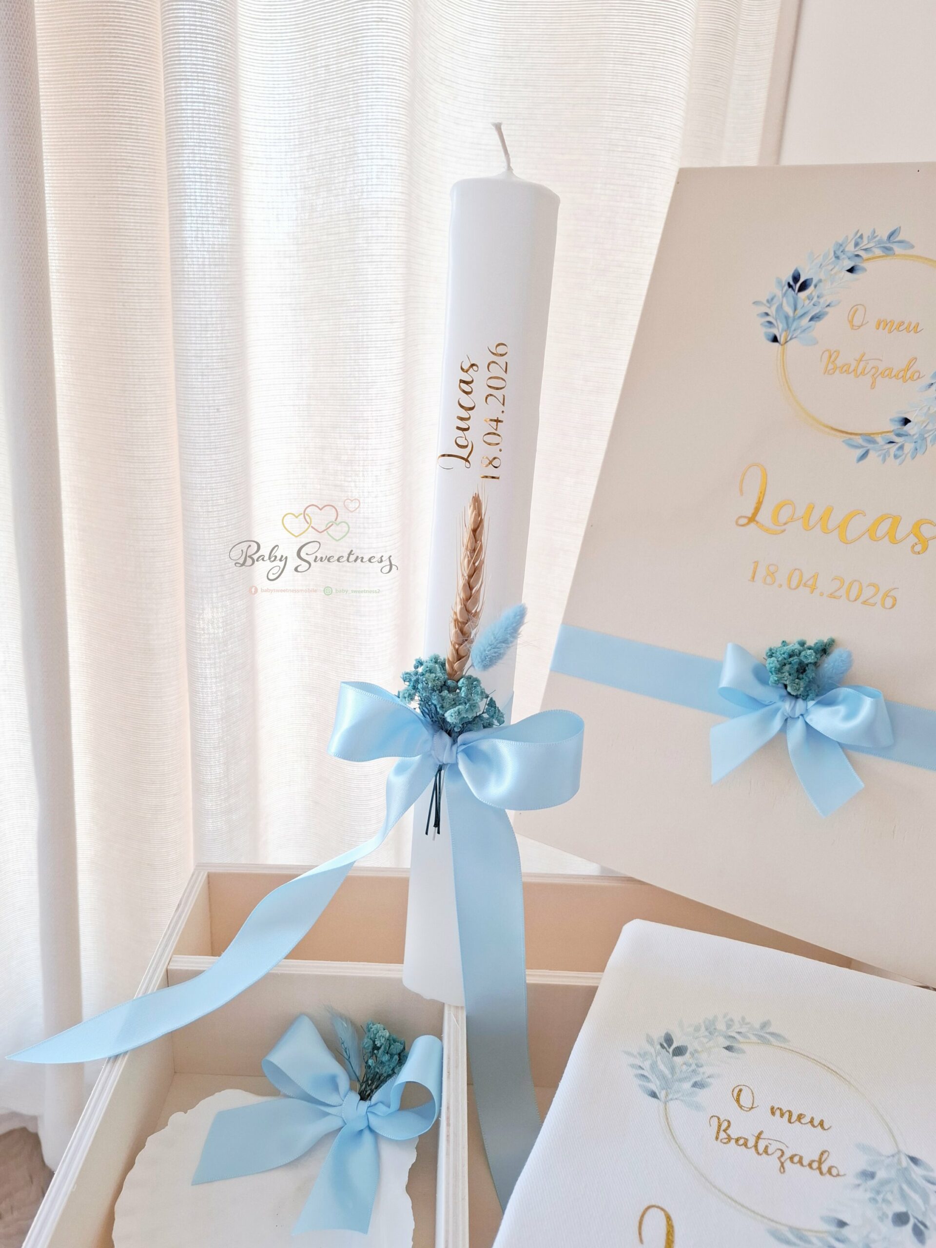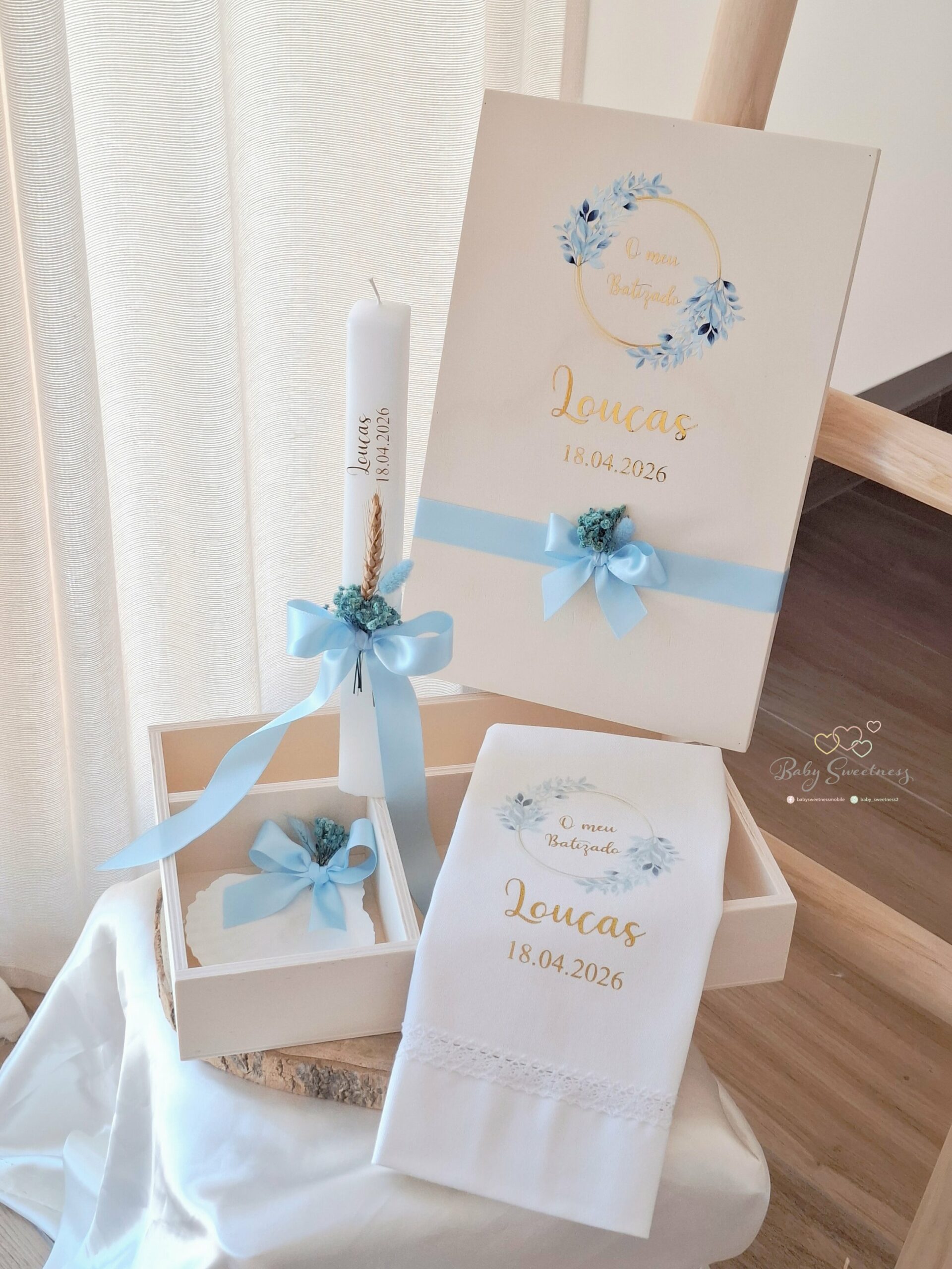 En achetant un coffret de Baptême de la marque Baby Sweetness, vous avez la possibilité de le personnaliser selon vos préférences. En effet, la boîte en bois, bougie, coquillage et drap de baptême seront personnalisés avec le nom de votre enfant et date du baptême. Il est également possible de personnaliser le coffret Baptême avec une photo de votre enfant, de choisir la couleur du ruban et fleurs séchées en déco. Veuillez préciser toutes ses informations avant de passer commande.