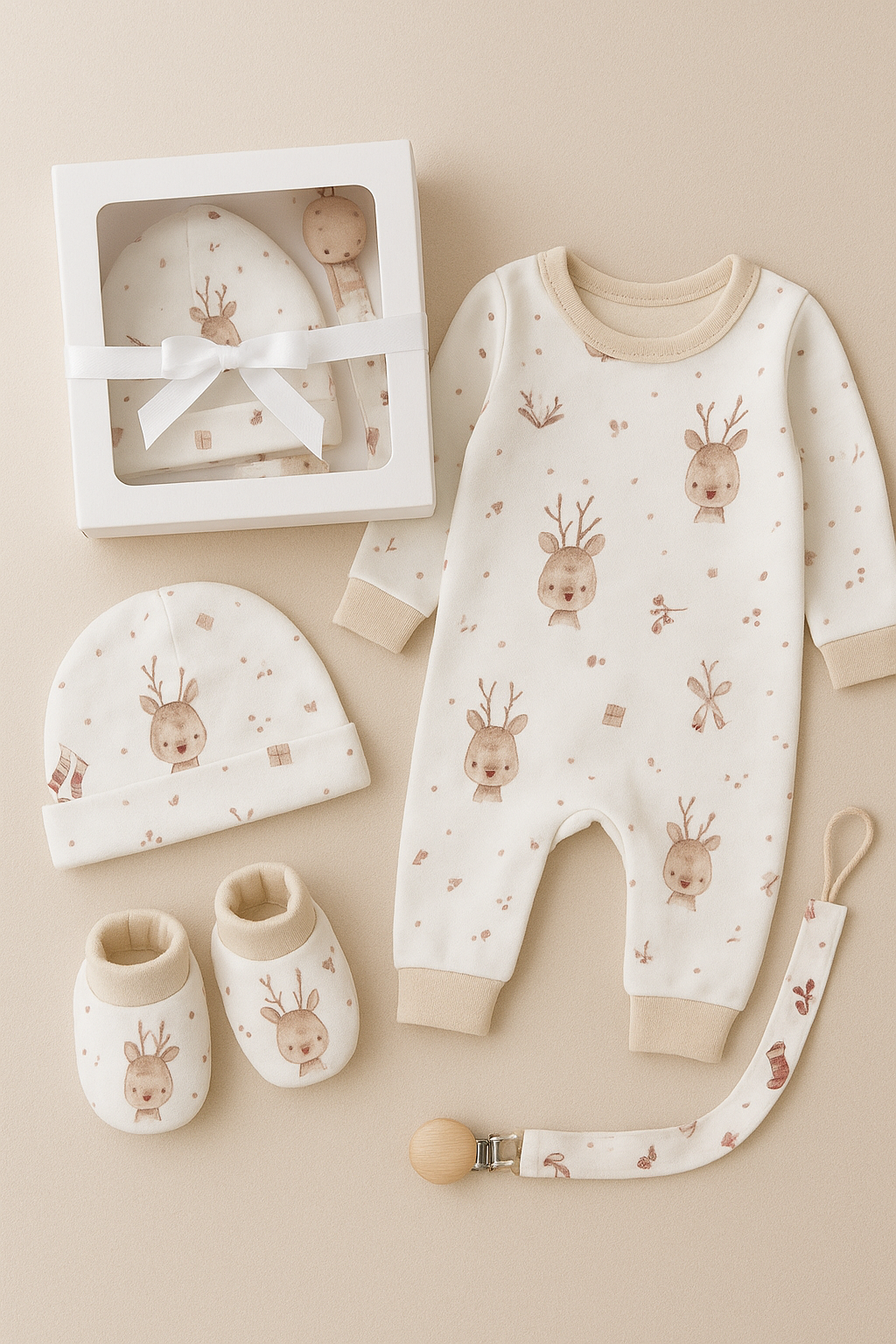 Vous cherchez un cadeau fait main à offrir à un nouveau né ce Noël ? Voici ce joli coffret de naissance 0 à 3 mois, confectionné à la main avec amour.