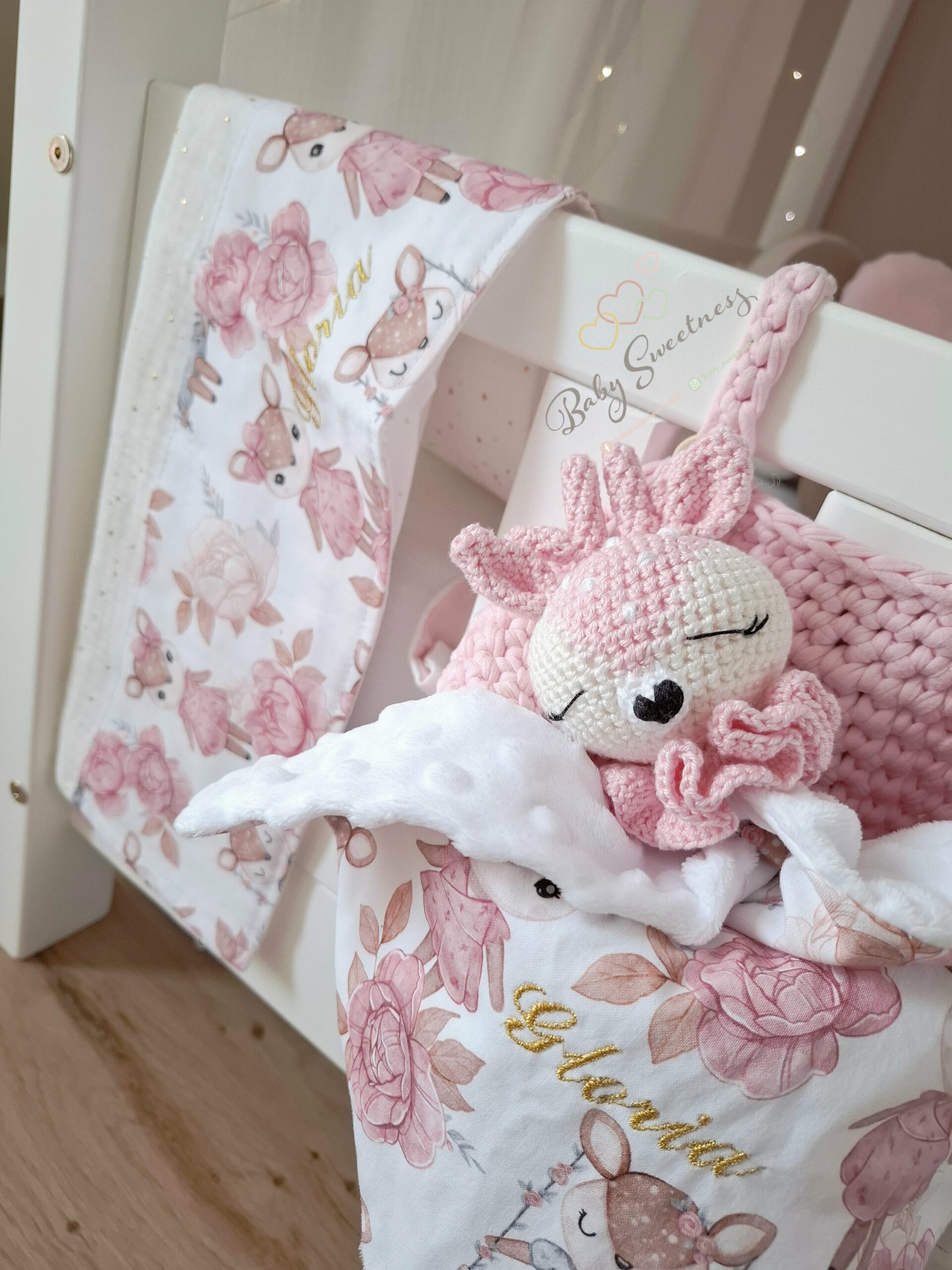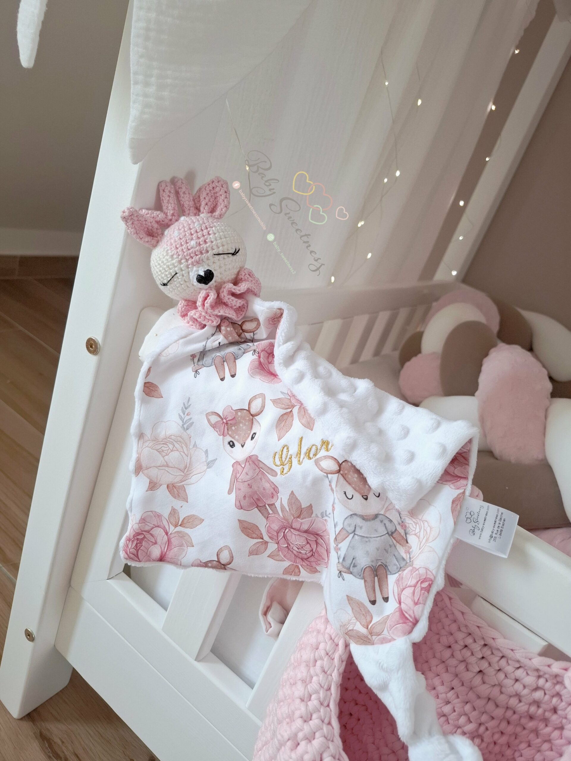 Conçu avec amour et à la main, ces jolis doudous biche en crochet, fait de fil de qualité et de coton imprimé, polaire minky, ils seront parfaits pour accompagner les nuits de votre enfant et faire des beaux rêves. Papa et Maman, gardez les contre votre peau afin qu’ils s’imprègnent de votre odeur avant de les donner à votre bébé. Quand l’enfant grandit, c’est aussi un souvenir précieux à garder.