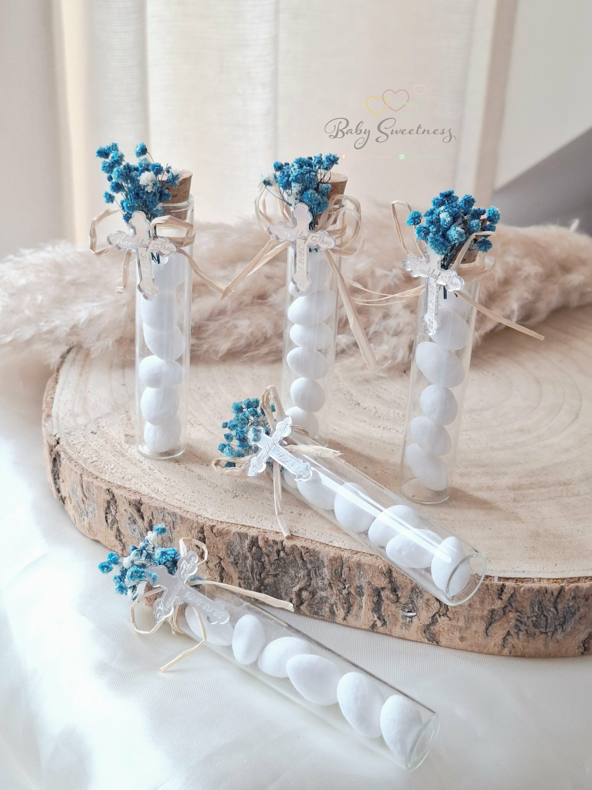 Chez Baby Sweetness, c’est simple ! Je vous propose ces jolis fioles à dragées fleurs séchées. Vous pouvez les personnaliser à votre goût afin de remercier vos invités de leur présence et leur prouver votre amour. Les fioles à dragées fleurs séchées sont vendus avec ou sans dragées.