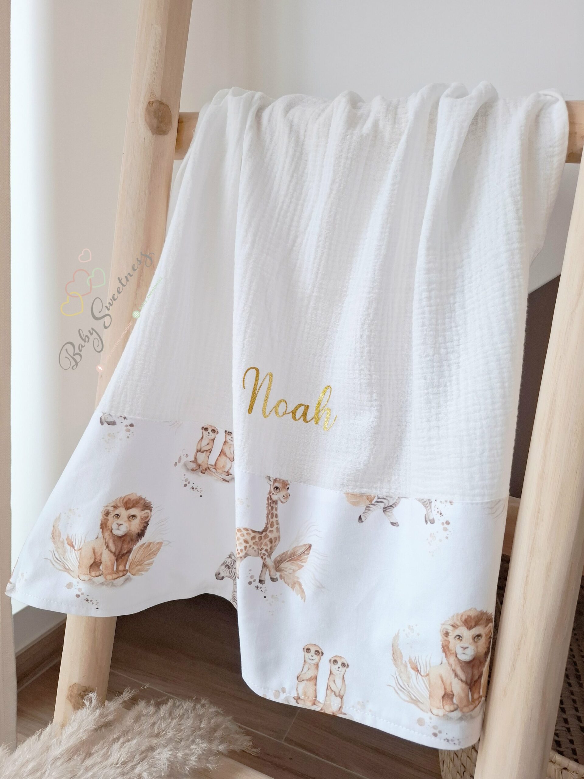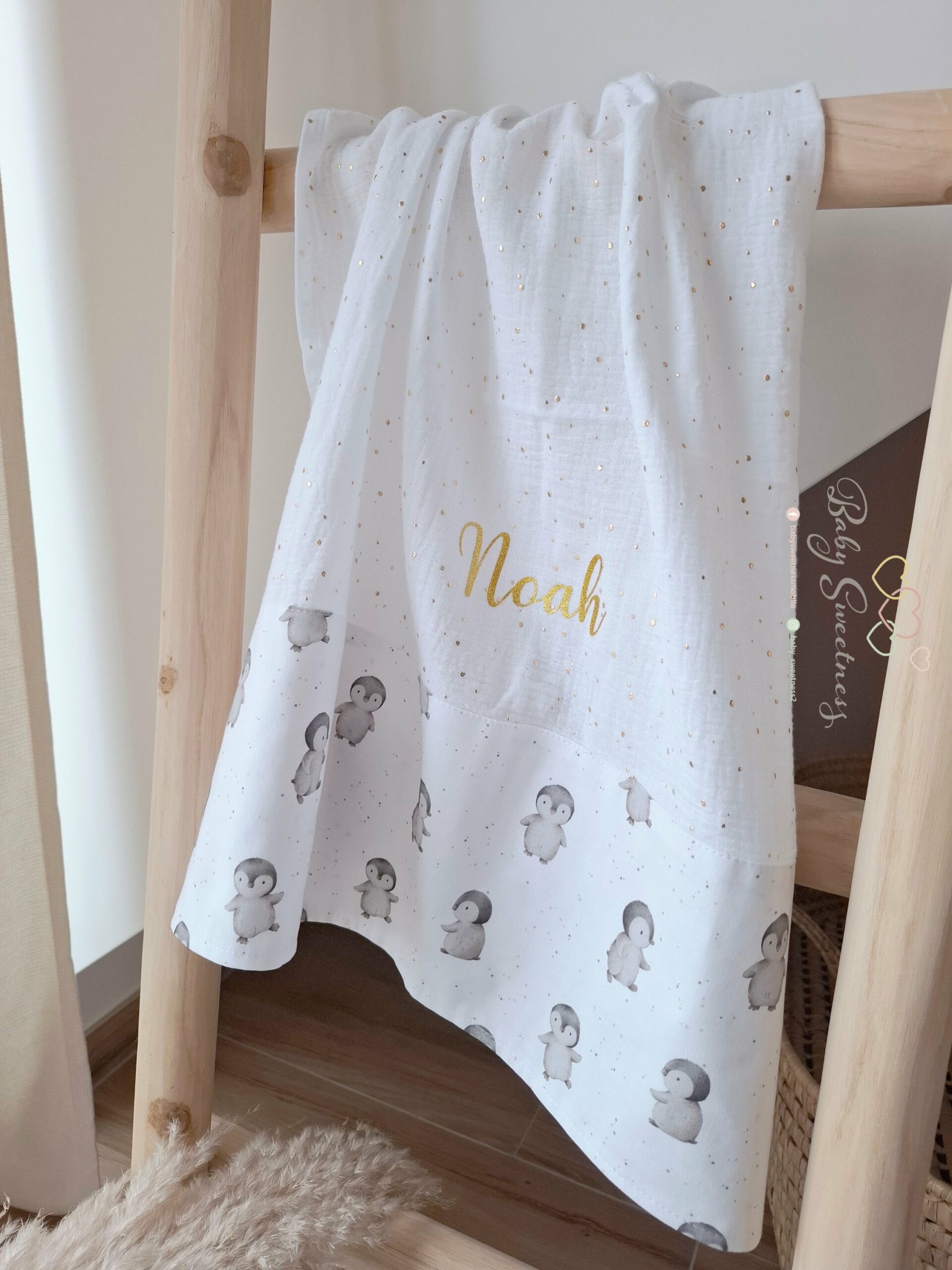 En achetant un lange de la marque Baby Sweetness, vous avez la possibilité de choisir vos tissus préférés et de le personnaliser avec le prénom de votre enfant. Vous pouvez également l’associer à d’autres articles eux aussi entièrement personnalisables tels que les couvertures, tours de lit, nids de bébé, doudous, protèges carnet de santé, etc.