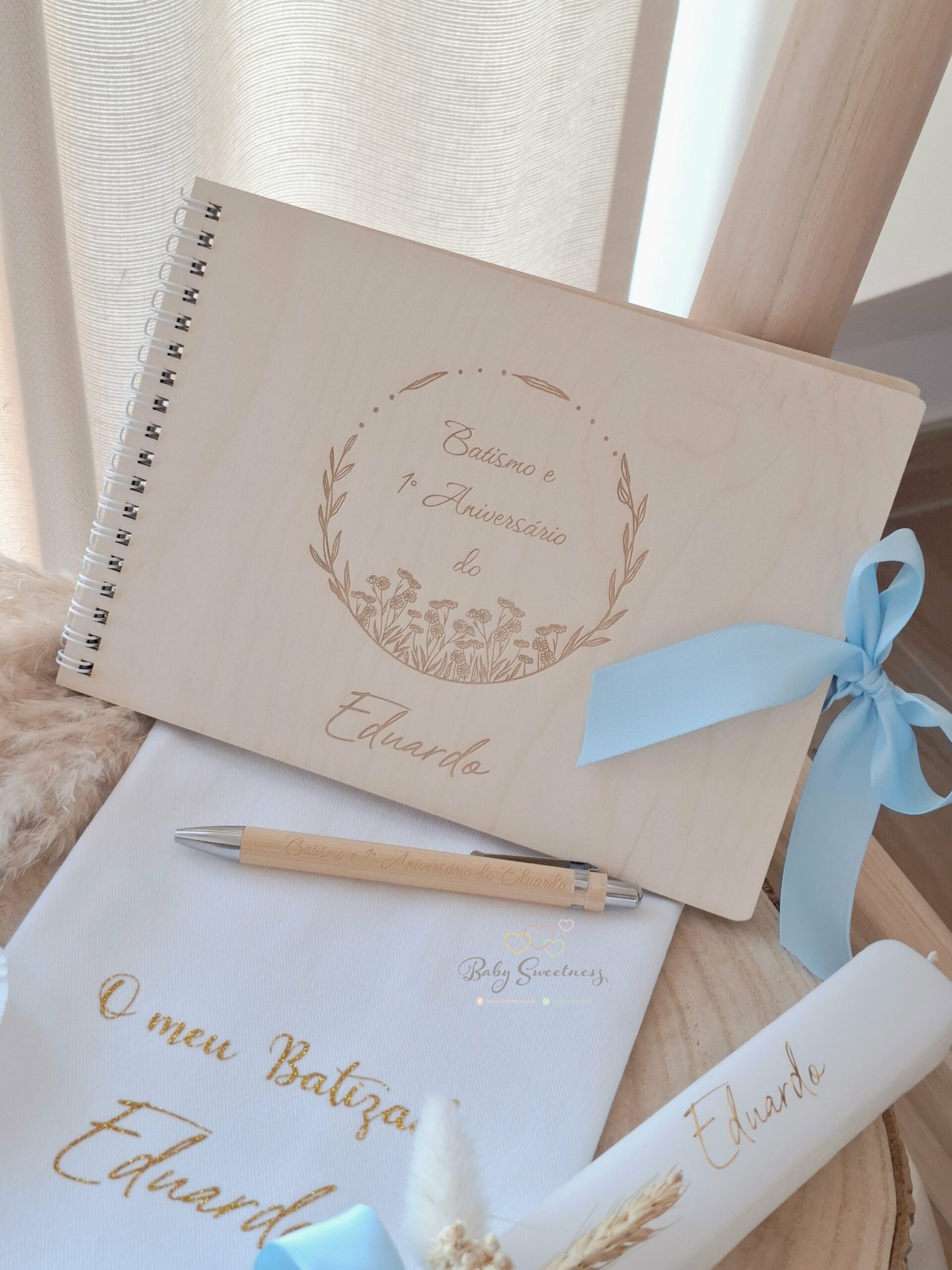 Le livre d’or en bois personnalisé comprend 40 pages blanches de haute qualité qui vous permettront de coller des photos et d’inscrire un petit message à côté. Un joli ruban de couleur de votre choix vient attacher votre livre d’or en bois.