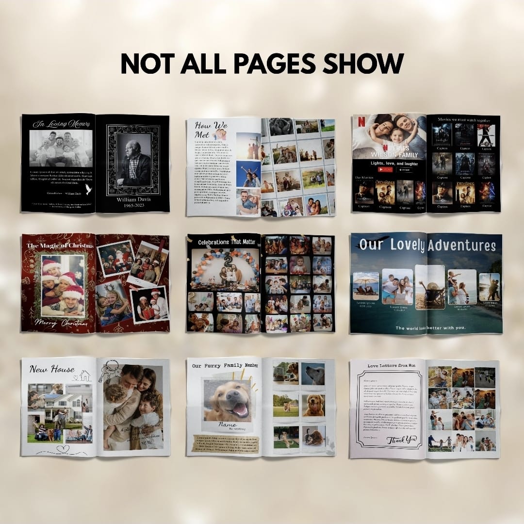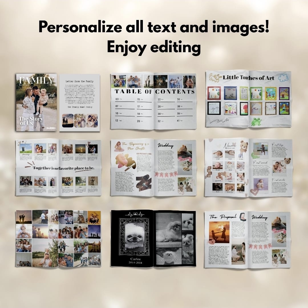 Jusqu’à 40 pages à personnaliser avec vos histoires, photos, lettres et souvenirs précieux.