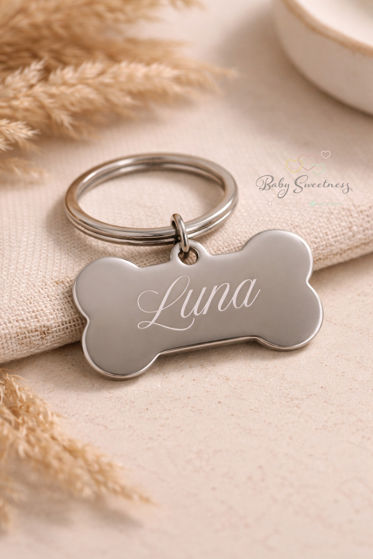 Gravé avec le nom de votre chien, il allie utilité et esthétisme. Son design intemporel en forme d’os s’adapte à tous les styles, tandis que sa finition soignée lui donne un aspect chic et durable.