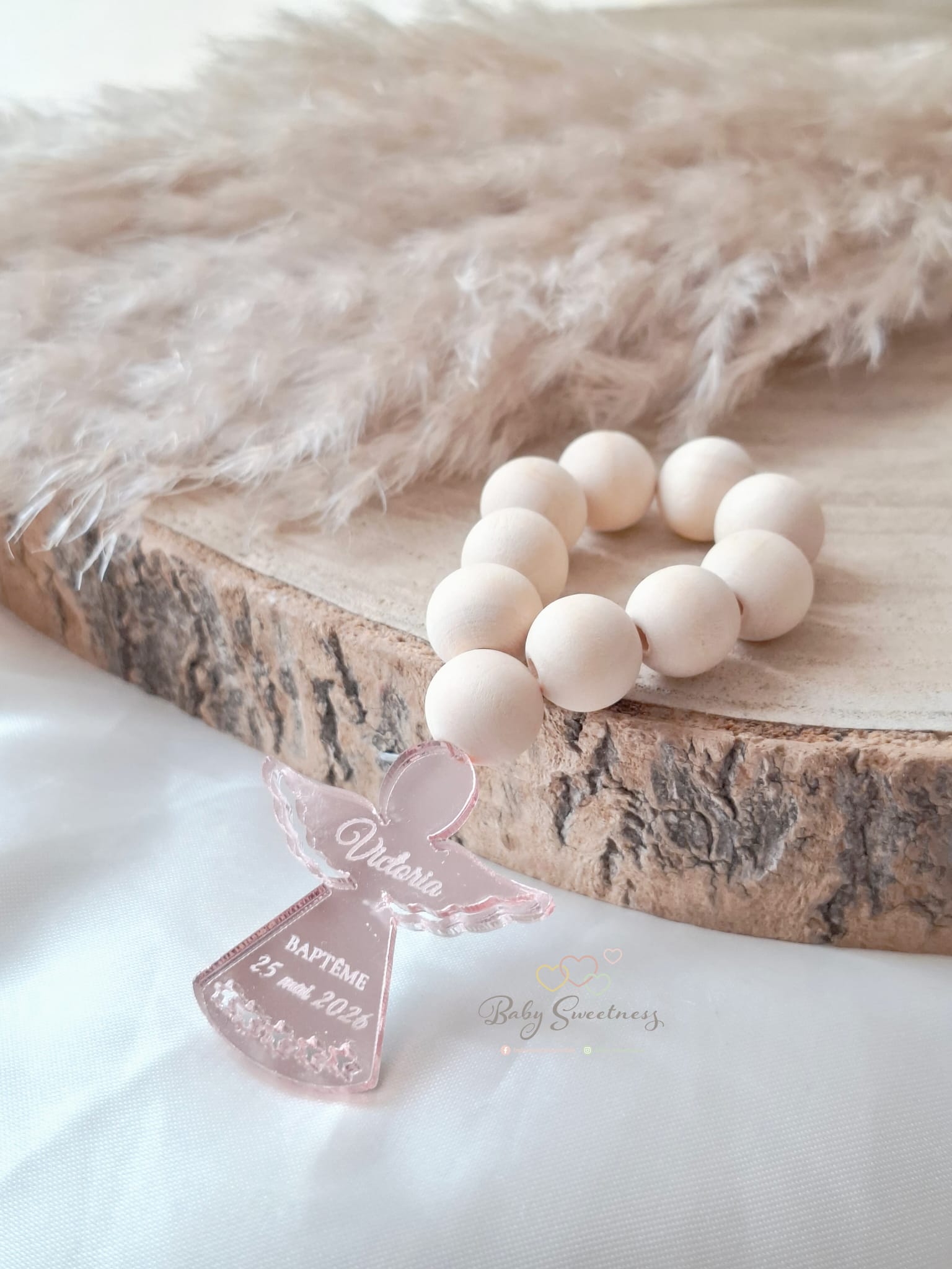 Chez Baby Sweetness, c’est simple ! Je vous propose ces magnifiques mini chapelets personnalisés. Vous pouvez les personnaliser à votre goût afin de remercier vos invités de leur présence et leur prouver votre amour. Ils sont en bois gravés au laser.
