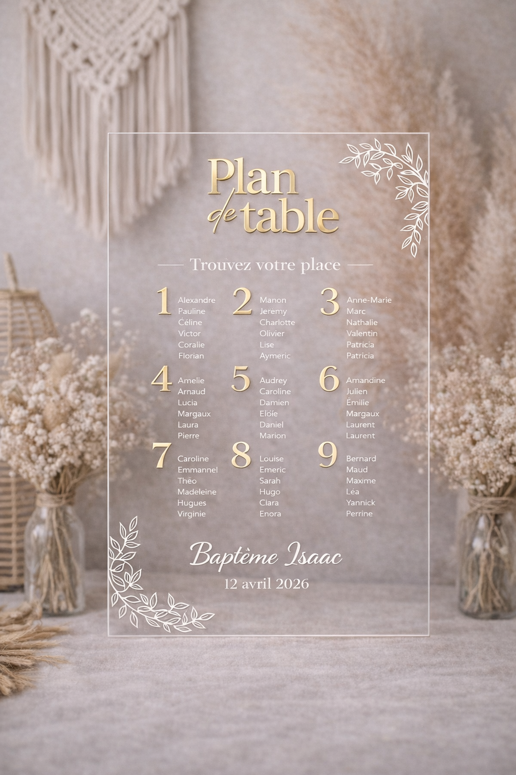 Personnalisé avec soin, ce plan de table s’adapte parfaitement à votre univers : romantique, moderne ou intemporel.