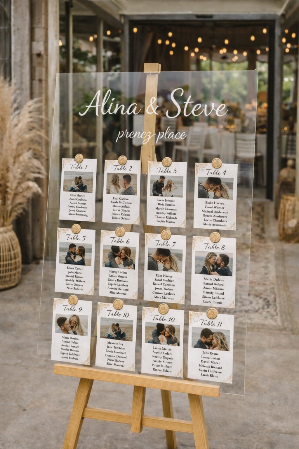 Personnalisé avec soin, ce plan de table s’adapte parfaitement à votre univers : romantique, moderne ou intemporel.