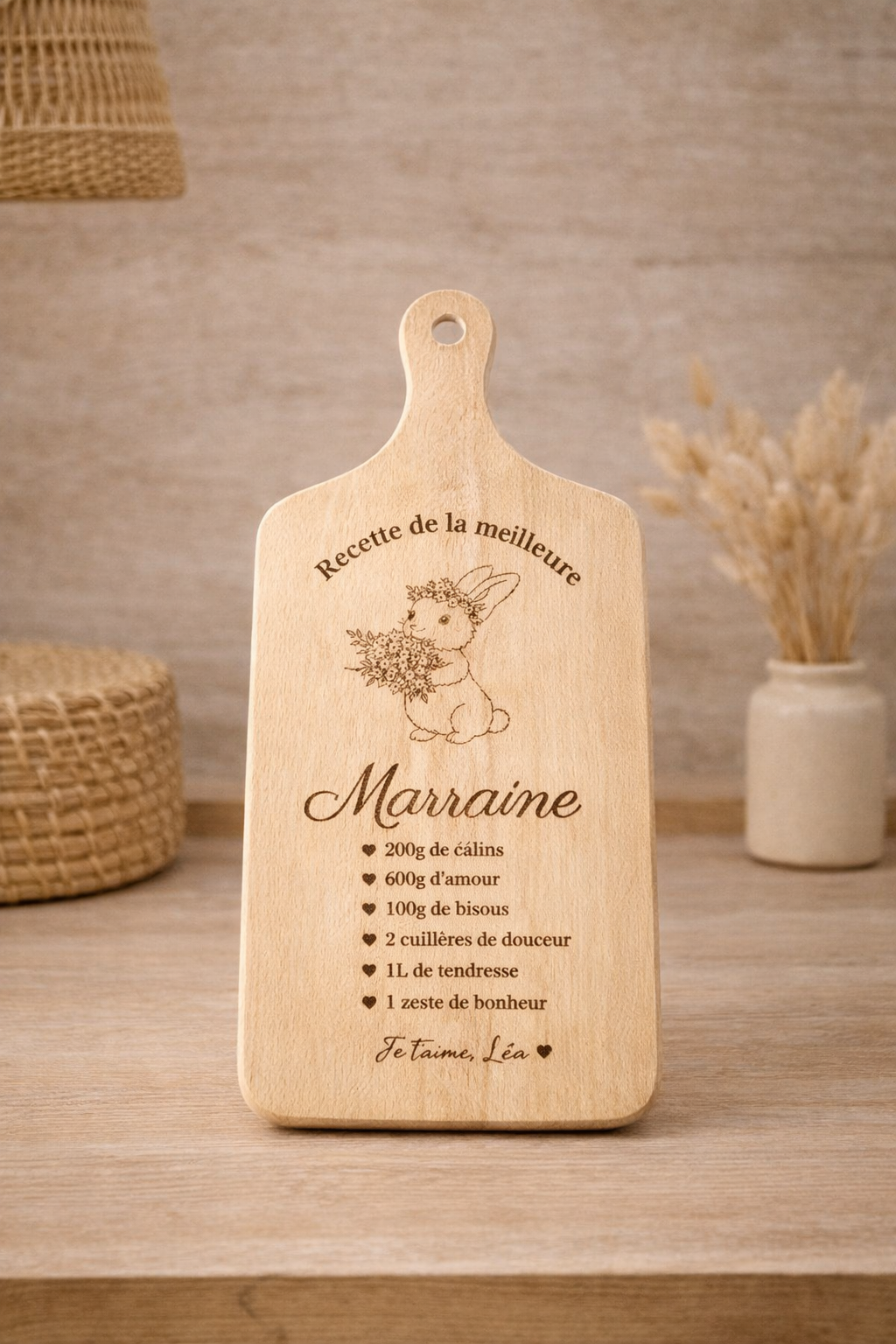 Offrez un cadeau à la fois utile et chargé d’émotion avec notre planche à découper en bois personnalisée. Fabriquée à partir de bois naturel de haute qualité, cette planche allie élégance, durabilité et originalité. Gravez-y un prénom, un message touchant ou une citation qui lui tient à cœur pour en faire un souvenir qu’elle chérira à chaque utilisation.