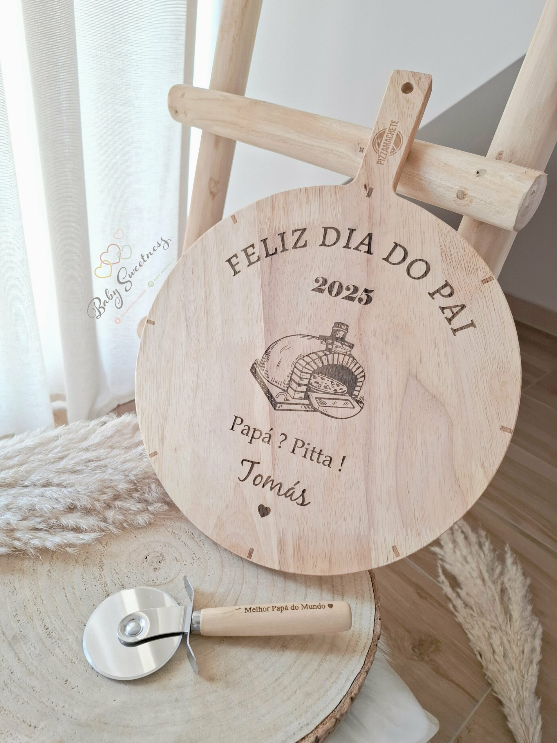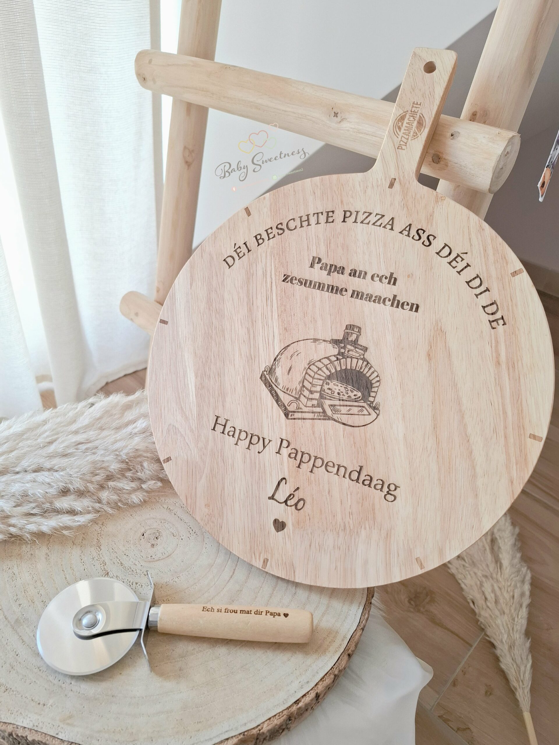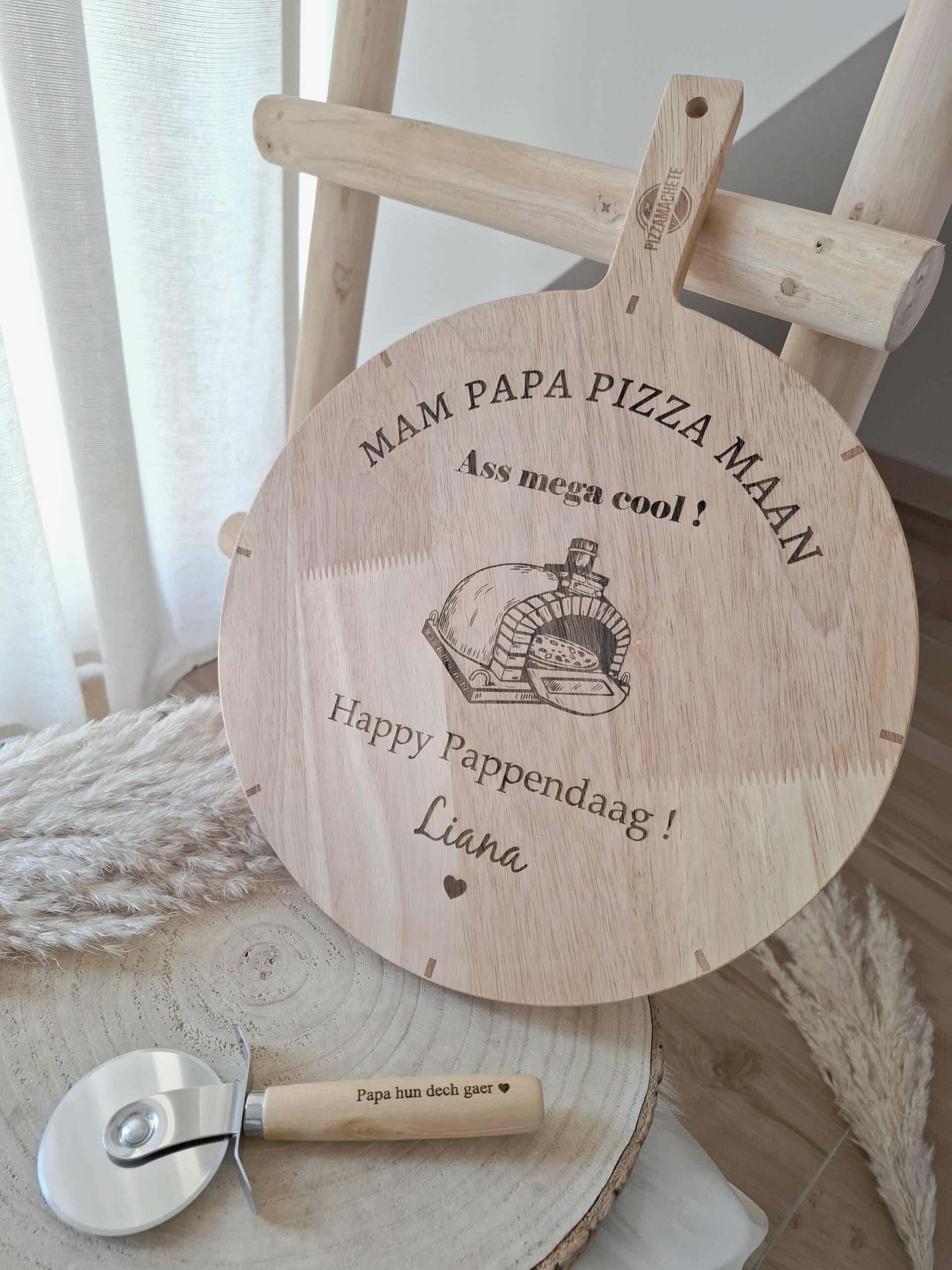 Personnalisez cette jolie planche à pizza avec un message de votre choix.