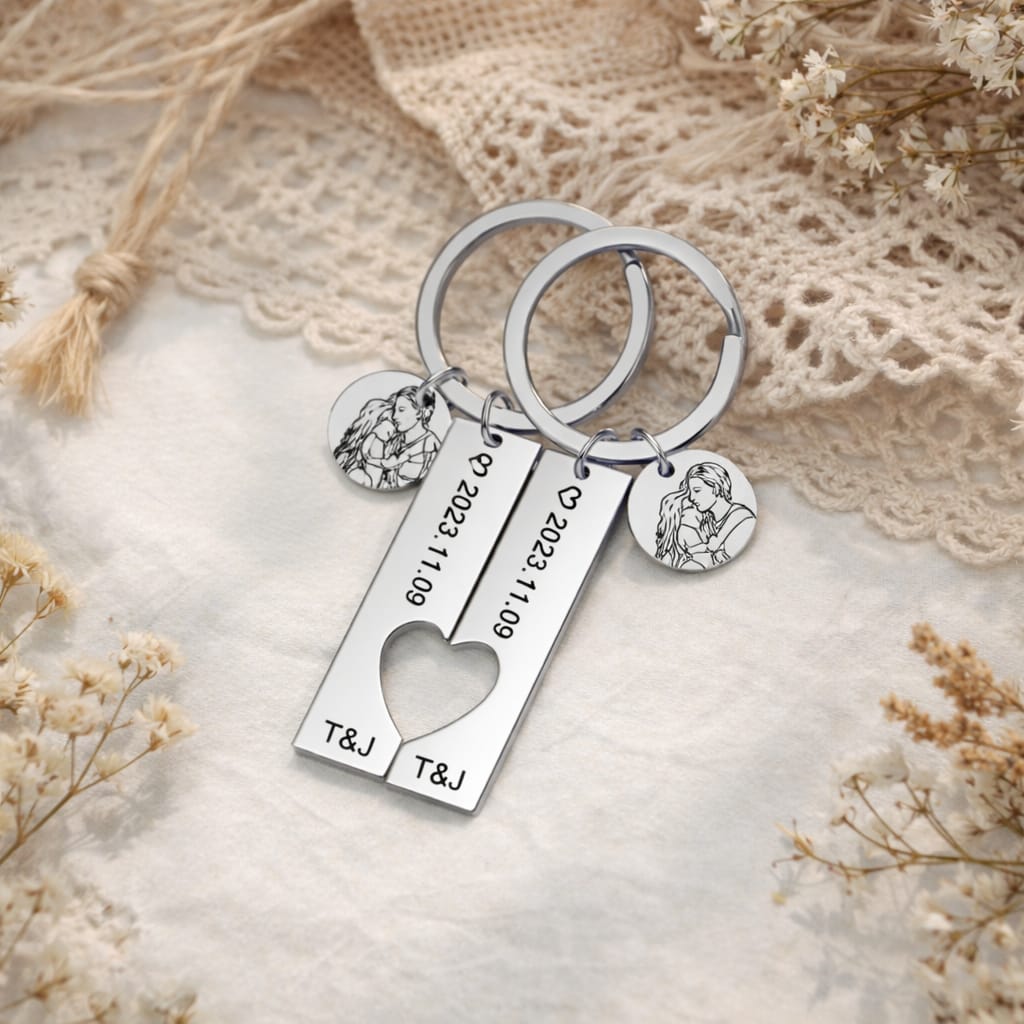 Porte-clés cœur avec médaille personnalisé