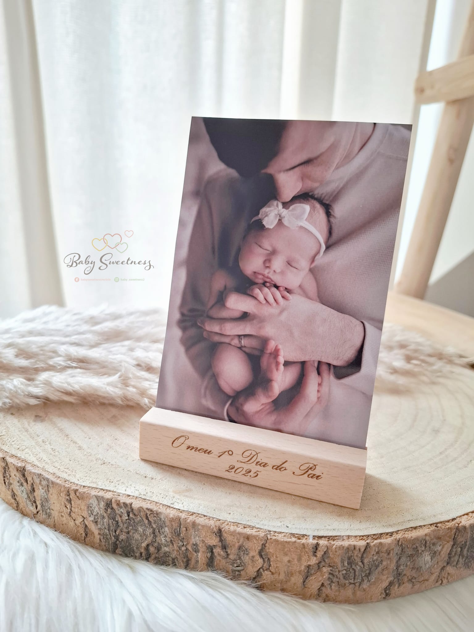 Célébrez l’occasion spéciale de la naissance de votre petit miracle ou offrez à vos proches nouveaux notre support photo en bois personnalisable ! Cet accessoire conçu avec amour n’est pas seulement une belle décoration, mais aussi une merveilleuse façon de capturer vos plus beaux souvenirs.