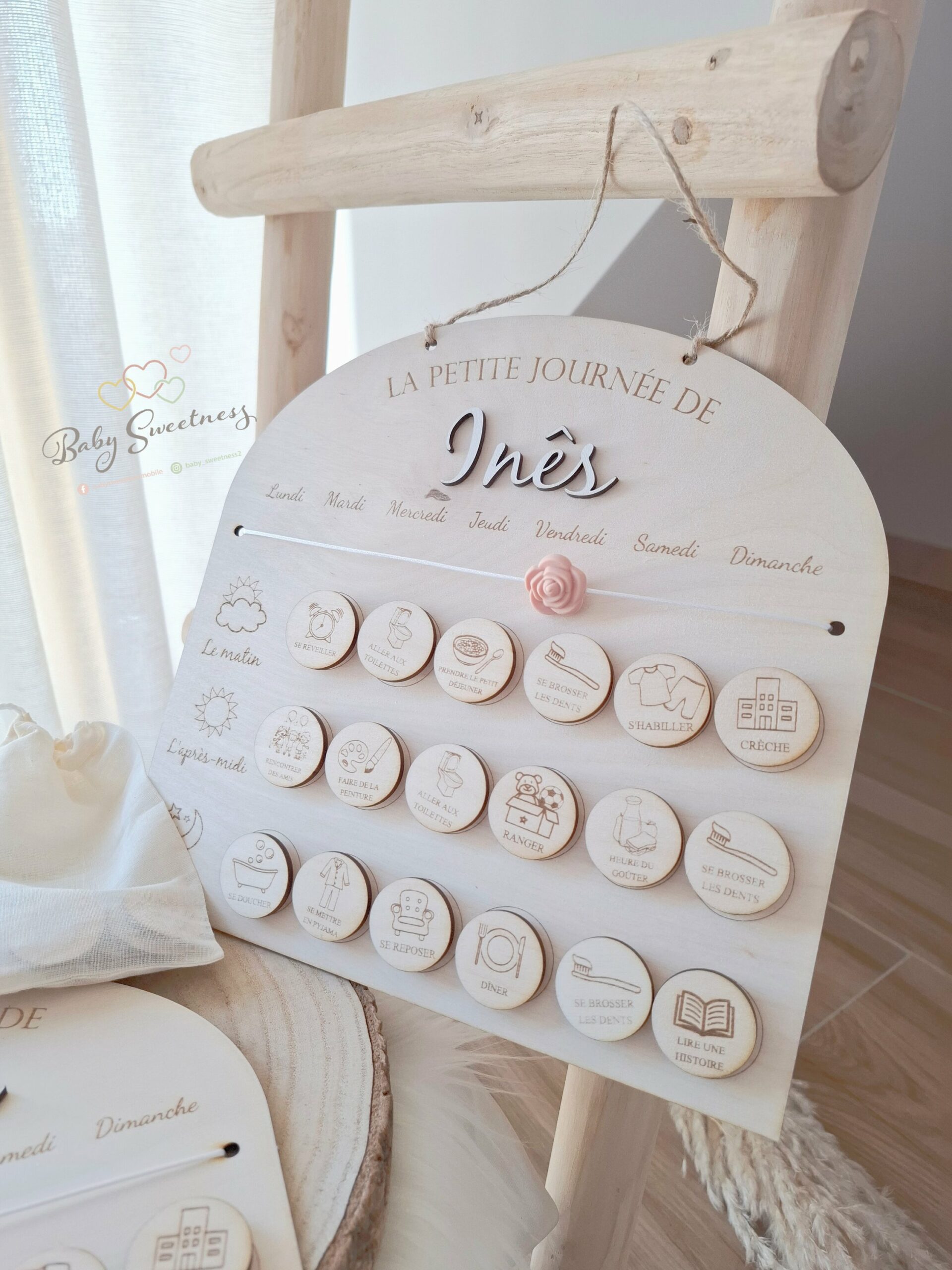 Transformez le quotidien en un rituel rassurant grâce à notre tableau “La petite journée de…”, conçu pour aider les enfants à visualiser et comprendre le déroulement de leur journée. Idéale pour la maison, la crèche ou l’école maternelle, cette pancarte illustrée encourage l’autonomie tout en apportant repères et sérénité.
