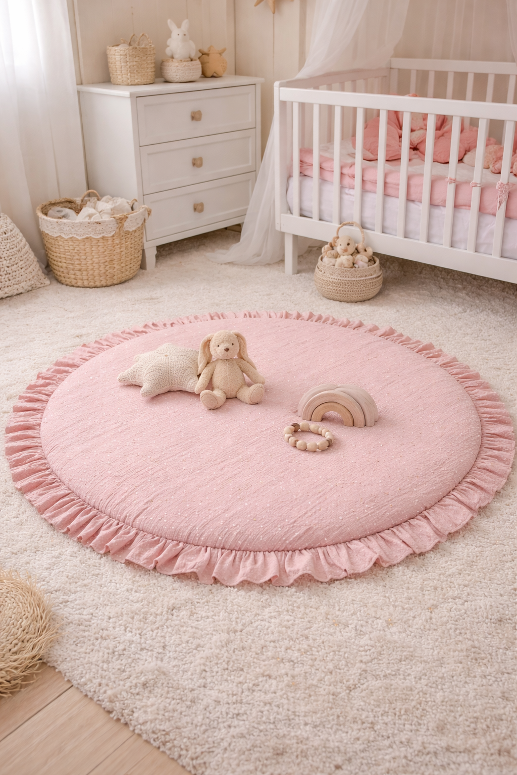 En achetant un tapis de chambre de la marque Baby Sweetness, vous avez la possibilité de choisir vos tissus préférés et de le personnaliser avec le prénom de votre enfant.