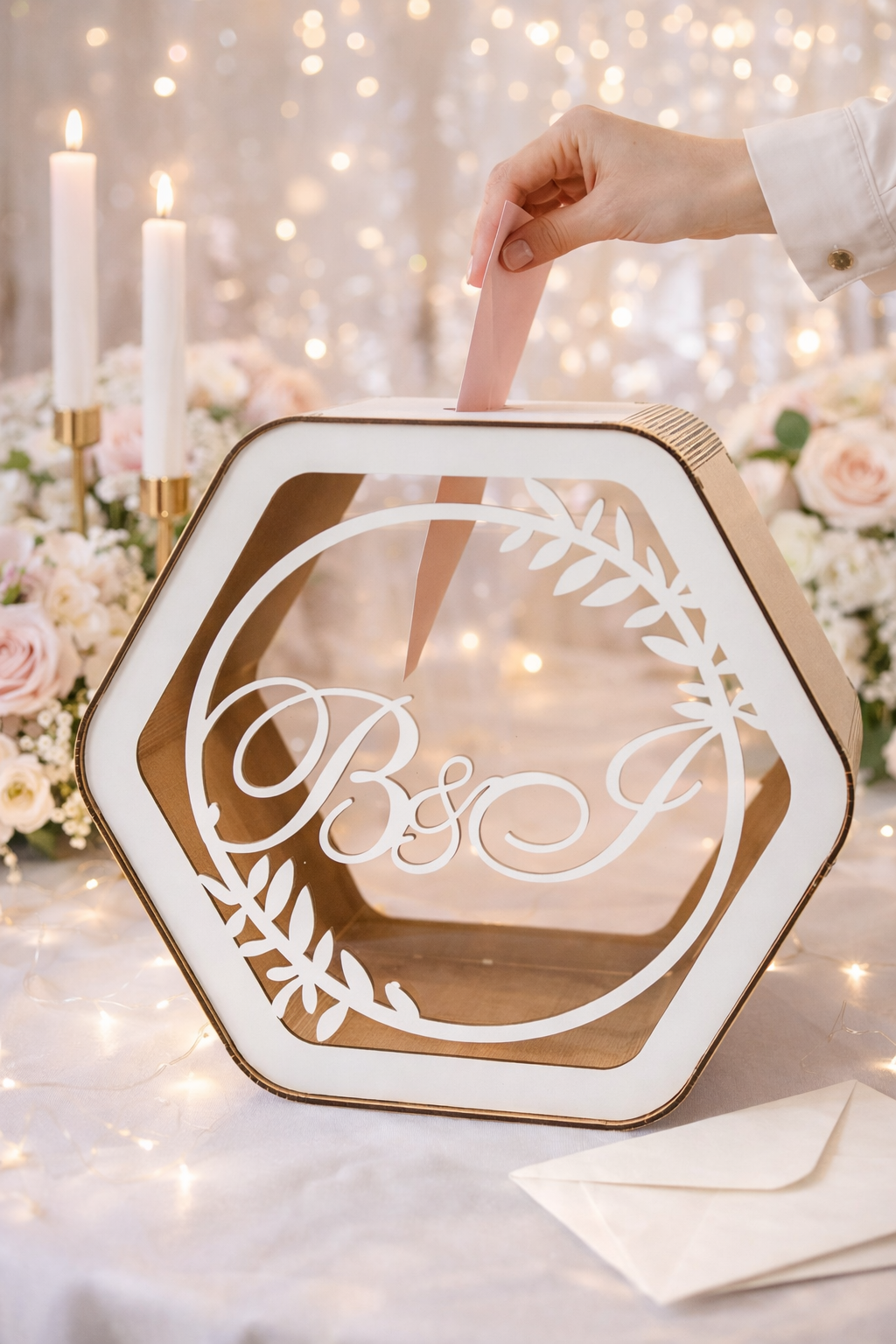 Cette jolie urne en bois collectera les enveloppes de vos invités avec discrétion. C’est une véritable tirelire à enveloppes réalisée en bois haute qualité et disposant d’une encoche sur le dessus pour y glisser les enveloppes.